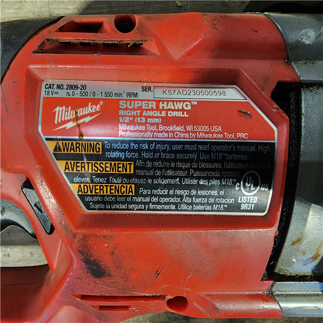 HOUSTON LOCATION - AS-IS Milwaukee M18 18V Fuel 1/2 Right Angle Drill Super Hawg Cordless Lithium-Ion 2809-20 (TOOL ONLY)