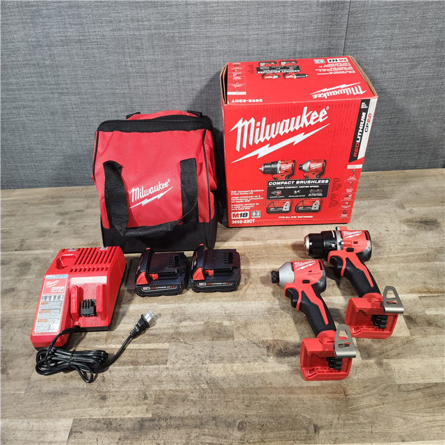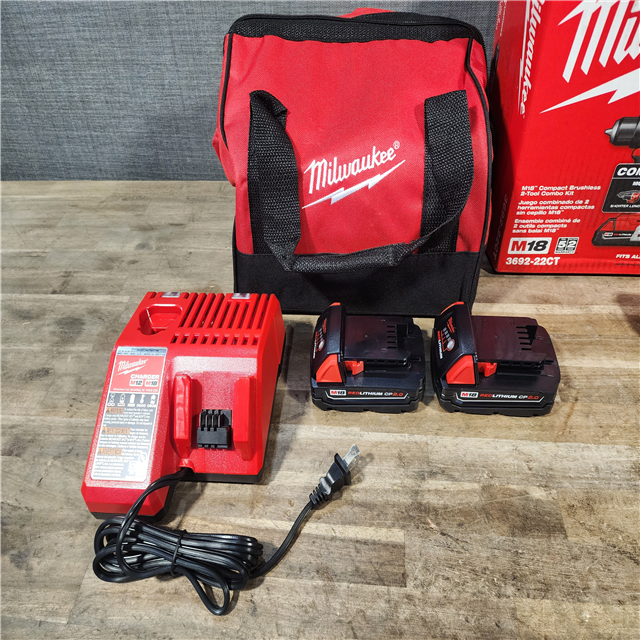 HOUSTON LOCATION - AS-IS Milwaukee M18 18V Lithium-Ion Brushless Cordless Compact Drill/Impact Combo Kit (2-Tool) W/(2) 2.0 Ah Batteries Charger & Bag