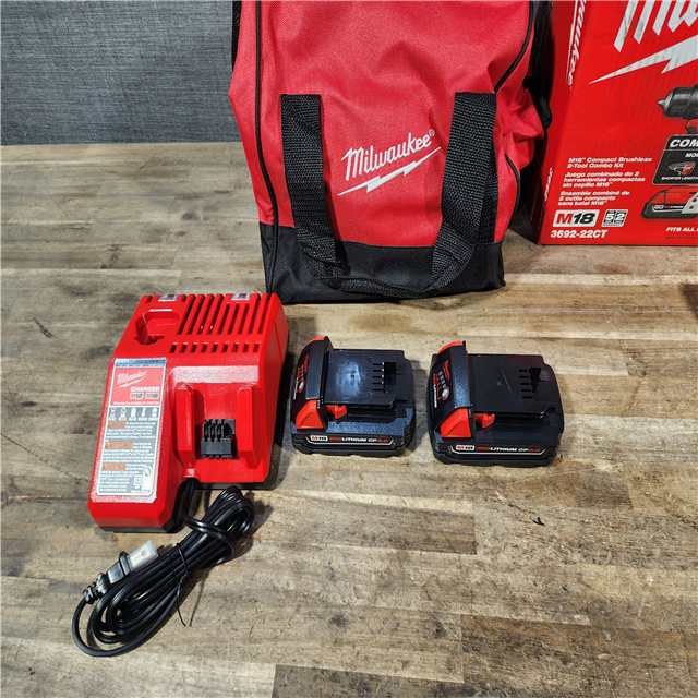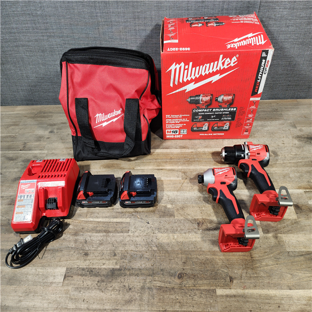 HOUSTON LOCATION - AS-IS Milwaukee M18 18V Lithium-Ion Brushless Cordless Compact Drill/Impact Combo Kit (2-Tool) W/(2) 2.0 Ah Batteries Charger & Bag