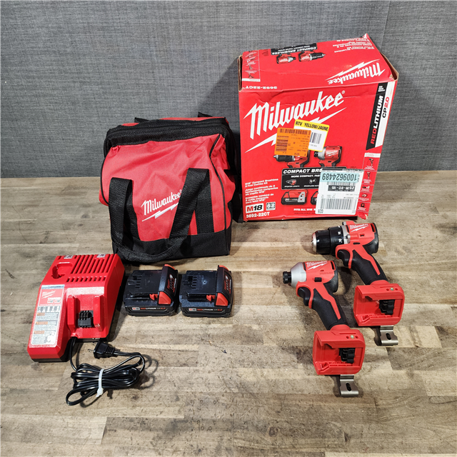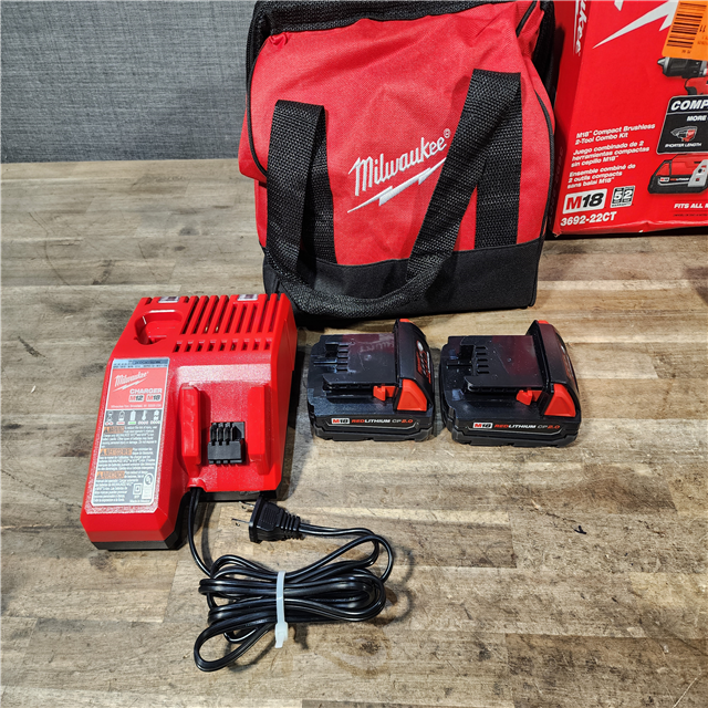 HOUSTON LOCATION - AS-IS Milwaukee M18 18V Lithium-Ion Brushless Cordless Compact Drill/Impact Combo Kit (2-Tool) W/(2) 2.0 Ah Batteries, Charger & Bag