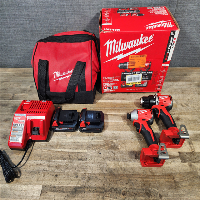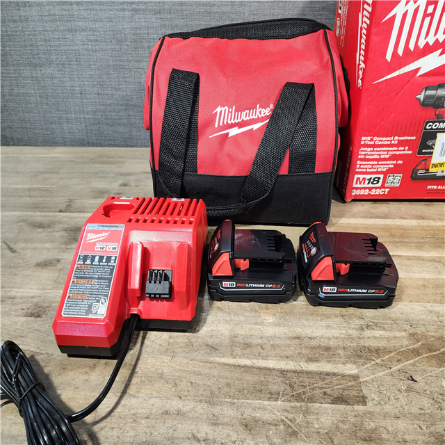 HOUSTON LOCATION - AS-IS Milwaukee M18 18V Lithium-Ion Brushless Cordless Compact Drill/Impact Combo Kit (2-Tool) W/(2) 2.0 Ah Batteries Charger & Bag
