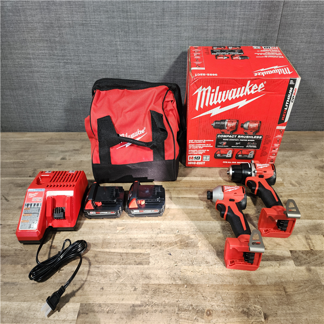 HOUSTON LOCATION - AS-IS Milwaukee M18 18V Lithium-Ion Brushless Cordless Compact Drill/Impact Combo Kit (2-Tool) W/(2) 2.0 Ah Batteries Charger & Bag