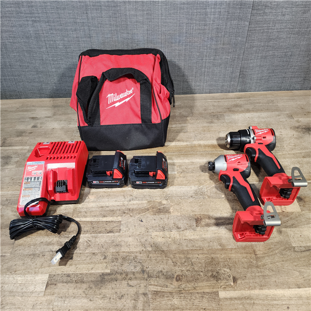 HOUSTON LOCATION - AS-IS Milwaukee M18 18V Lithium-Ion Brushless Cordless Compact Drill/Impact Combo Kit (2-Tool) W/(2) 2.0 Ah Batteries Charger & Bag