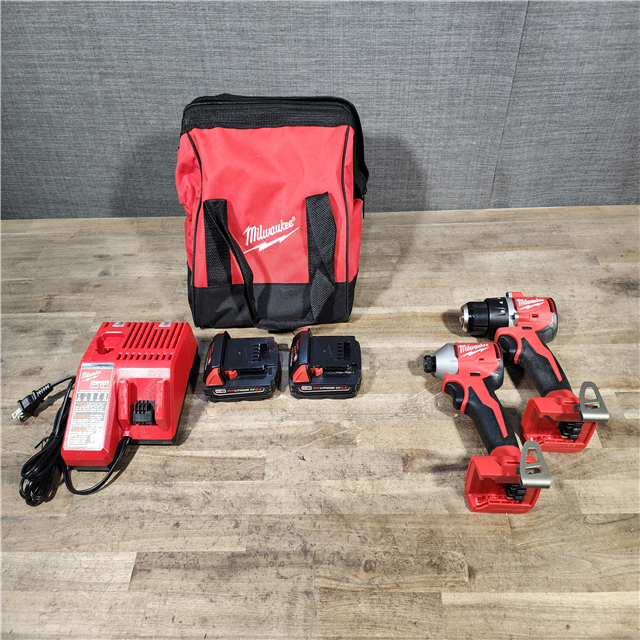 HOUSTON LOCATION - AS-IS Milwaukee M18 18V Lithium-Ion Brushless Cordless Compact Drill/Impact Combo Kit (2-Tool) W/(2) 2.0 Ah Batteries Charger & Bag