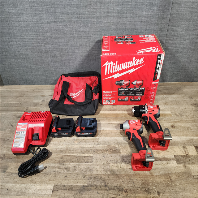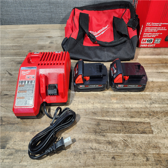 HOUSTON LOCATION - AS-IS Milwaukee M18 18V Lithium-Ion Brushless Cordless Compact Drill/Impact Combo Kit (2-Tool) W/(2) 2.0 Ah Batteries Charger & Bag