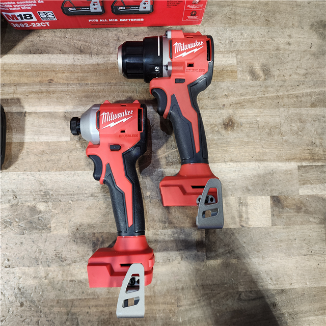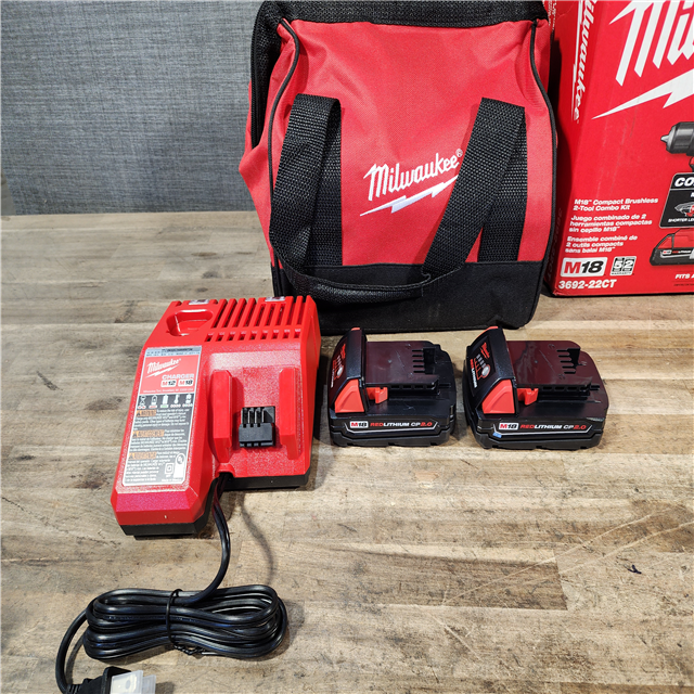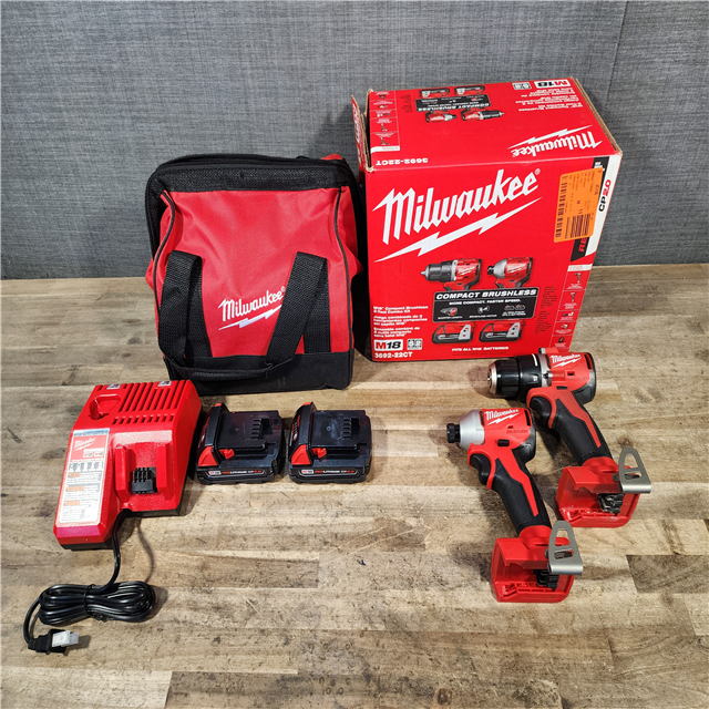HOUSTON LOCATION - AS-IS Milwaukee M18 18V Lithium-Ion Brushless Cordless Compact Drill/Impact Combo Kit (2-Tool) W/(2) 2.0 Ah Batteries Charger & Bag