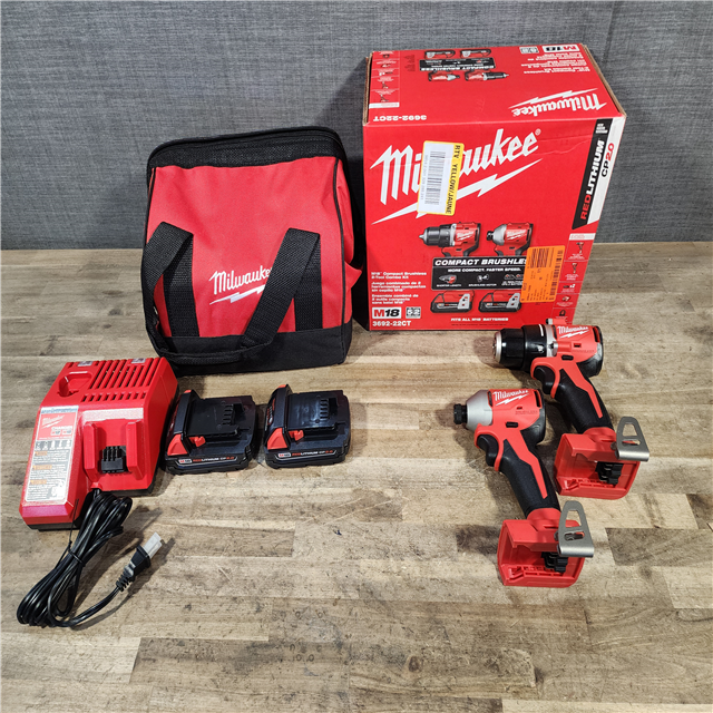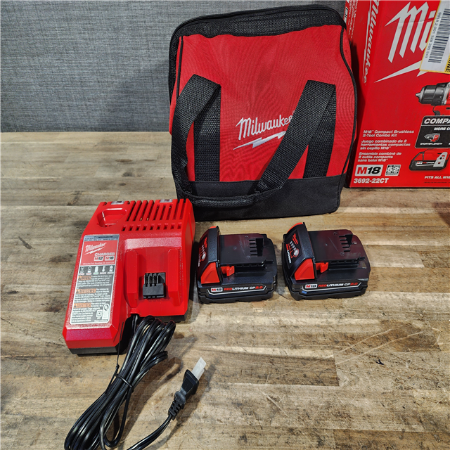 HOUSTON LOCATION - AS-IS Milwaukee M18 18V Lithium-Ion Brushless Cordless Compact Drill/Impact Combo Kit (2-Tool) W/(2) 2.0 Ah Batteries Charger & Bag