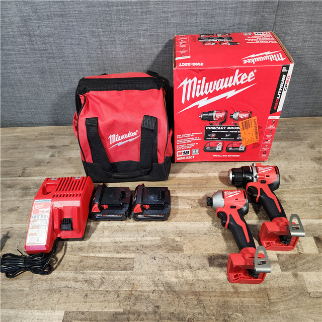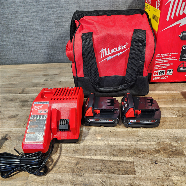 HOUSTON LOCATION - AS-IS Milwaukee M18 18V Lithium-Ion Brushless Cordless Compact Drill/Impact Combo Kit (2-Tool) W/(2) 2.0 Ah Batteries Charger & Bag