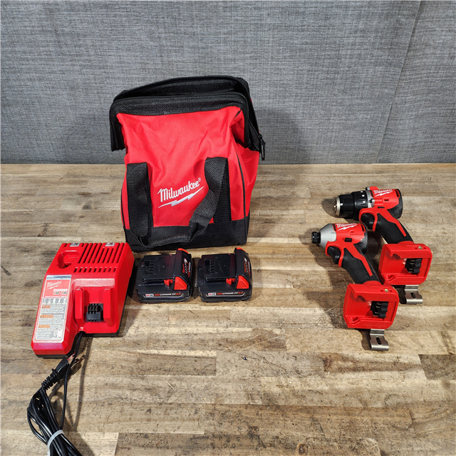 HOUSTON LOCATION - AS-IS Milwaukee M18 18V Lithium-Ion Brushless Cordless Compact Drill/Impact Combo Kit (2-Tool) W/(2) 2.0 Ah Batteries Charger & Bag