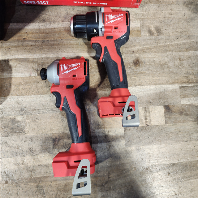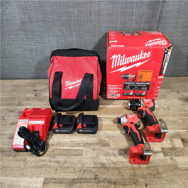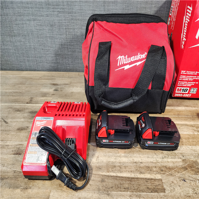 HOUSTON LOCATION - AS-IS Milwaukee M18 18V Lithium-Ion Brushless Cordless Compact Drill/Impact Combo Kit (2-Tool) W/(2) 2.0 Ah Batteries Charger & Bag