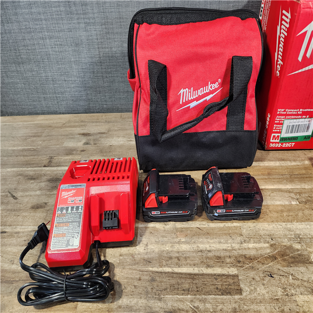 HOUSTON LOCATION - AS-IS Milwaukee M18 18V Lithium-Ion Brushless Cordless Compact Drill/Impact Combo Kit (2-Tool) W/(2) 2.0 Ah Batteries Charger & Bag