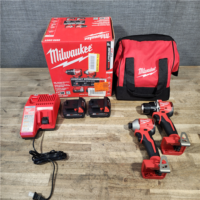 HOUSTON LOCATION - AS-IS Milwaukee M18 18V Lithium-Ion Brushless Cordless Compact Drill/Impact Combo Kit (2-Tool) W/(2) 2.0 Ah Batteries Charger & Bag