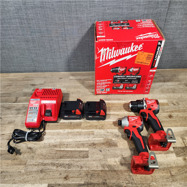 HOUSTON LOCATION - AS-IS Milwaukee M18 18V Lithium-Ion Brushless Cordless Compact Drill/Impact Combo Kit (2-Tool) W/(2) 2.0 Ah Batteries Charger & Bag