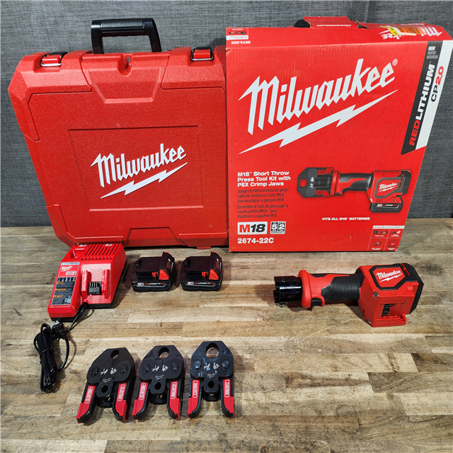 HOUSTON LOCATION - AS-IS Milwaukee M18 18V Lithium-Ion Cordless Short Throw Press Tool Kit