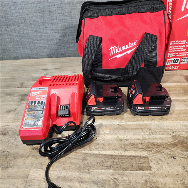 HOUSTON LOCATION - AS-IS Milwaukee M18 18V Lithium-Ion Brushless Cordless Compact Drill/Impact Combo Kit (2-Tool) W/(2) 2.0 Ah Batteries Charger & Bag