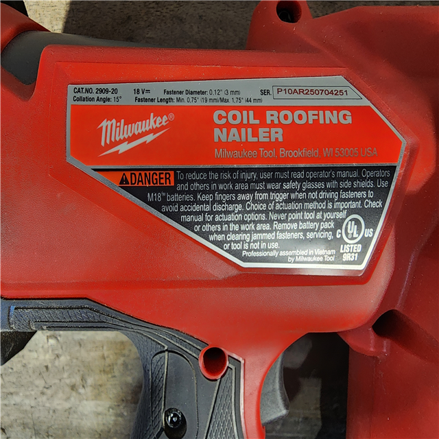 HOUSTON LOCATION - AS-IS Milwaukee M18 FUEL 18-Volt Lithium-Ion Brushless Cordless Coil Roofing Nailer (Tool Only)