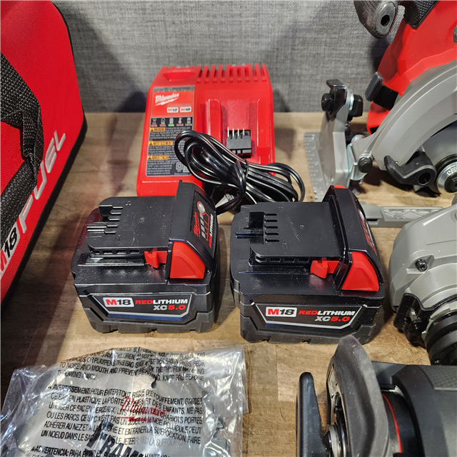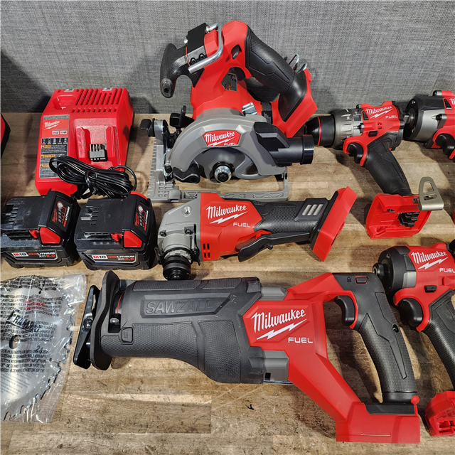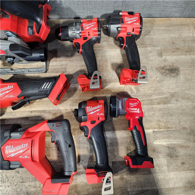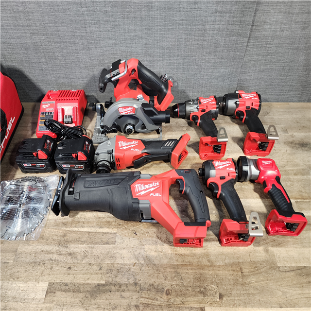 HOUSTON LOCATION - AS-IS Milwaukee M18 FUEL 18V Lithium-Ion Brushless Cordless Combo Kit with Two 5.0 Ah Batteries 1 Charger 2 Tool Bags (7-Tool)
