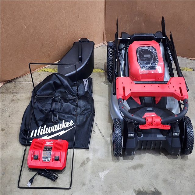 HOUSTON LOCATION - AS-IS Milwaukee M18 FUEL Brushless Cordless 21 in. Walk Behind Dual Battery Self-Propelled Mower Kit W/ BATTERY CHARGER