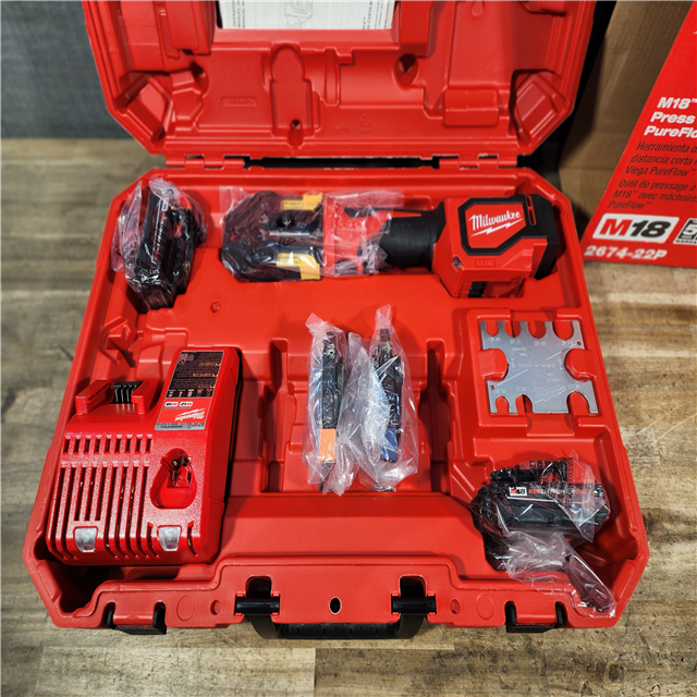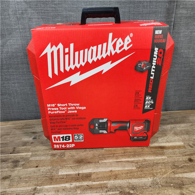 HOUSTON LOCATION - AS-IS (NEW) Milwaukee-2674-22P M18 Short Throw Press Tool Kit W/ Viega PureFlow Jaws