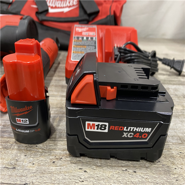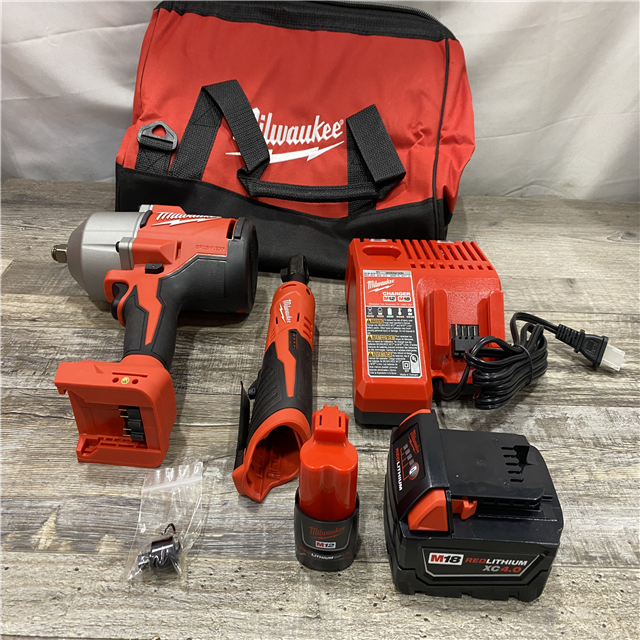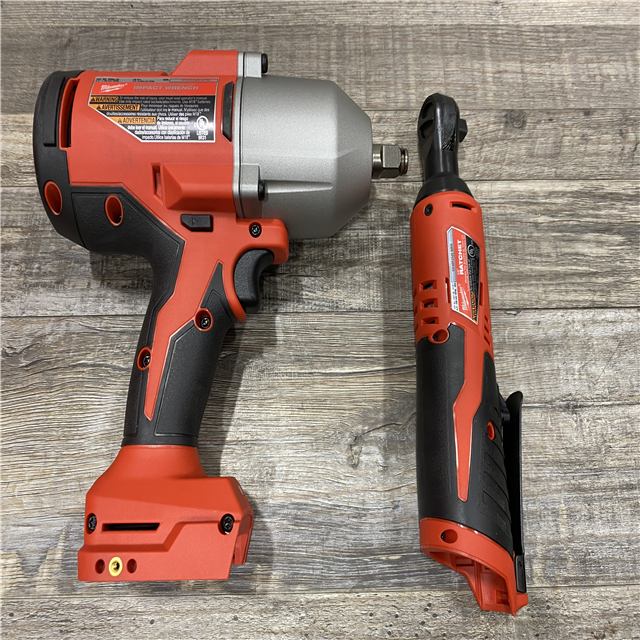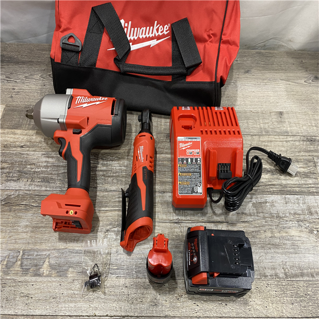 LIKE NEW - Milwaukee 12/18V Lithium-Ion Cordless 3/8 in. Ratchet and 1/2 in. High Torque Impact Wrench with Friction Ring Combo Kit