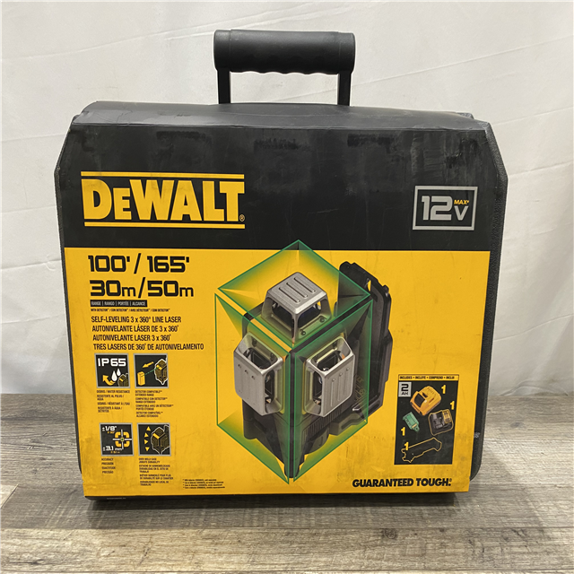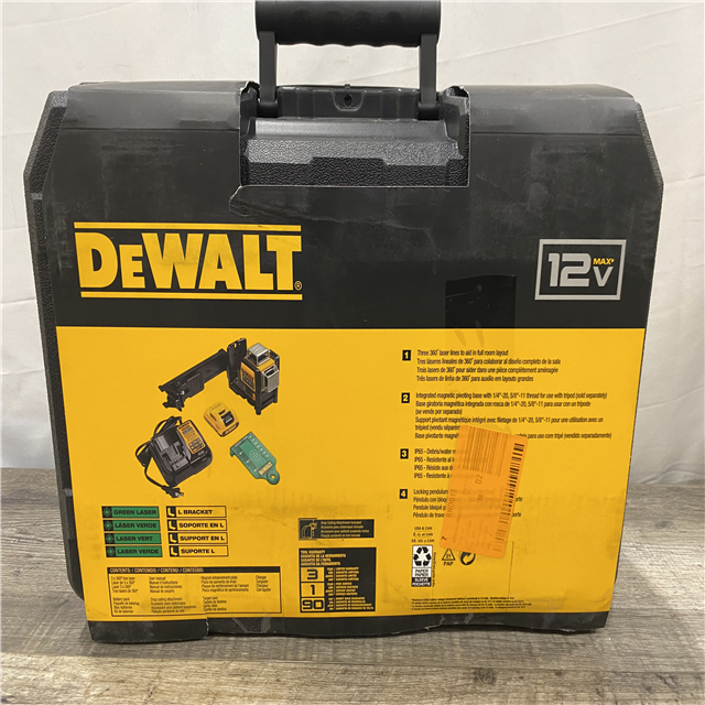 NEW - DEWALT 12V MAX Lithium-Ion 100 ft. Green Self-Leveling 3-Beam 360 Degree Laser Level with 2.0Ah Battery Charger and Case