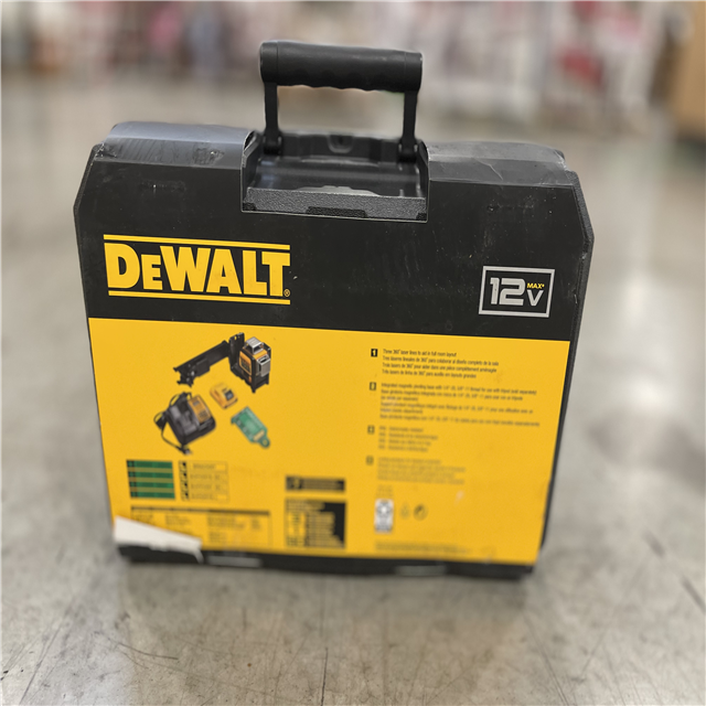 NEW! - DEWALT 12V MAX Lithium-Ion 100 ft. Green Self-Leveling 3-Beam 360 Degree Laser Level with 2.0Ah Battery, Charger and Case