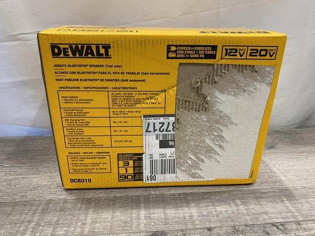 NEW - DEWALT 20V MAX Cordless Bluetooth Speaker (Tool Only)
