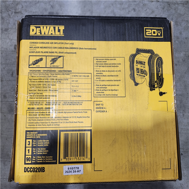 NEW! - DEWALT 20V MAX Cordless Electric Portable Inflator (Tool Only)