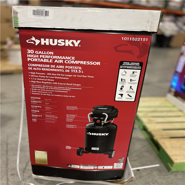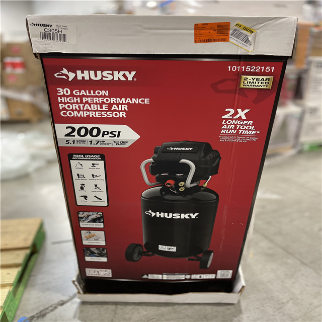 NEW! - Husky 1.7 HP, 200 PSI, 30 Gal., 5.1 SCFM 90 PSI, Single-Stage, Oil Free Portable Vertical Electric Air Compressor