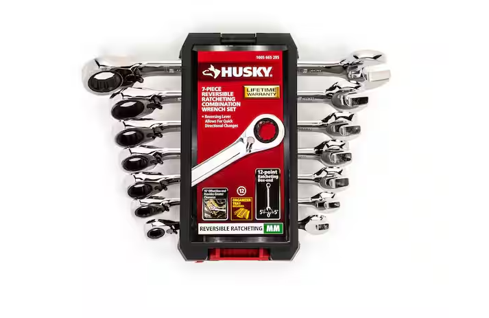 NEW! - Husky Reversible Ratcheting MM Combination Wrench Set (7-Piece) - 12 UNITS