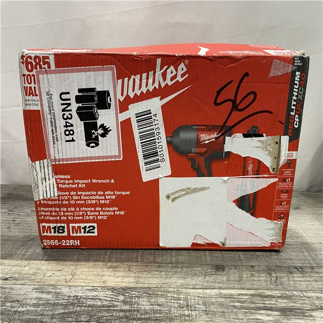 NEW - Milwaukee 12/18V Lithium-Ion Cordless 3/8 in. Ratchet and 1/2 in. High Torque Impact Wrench with Friction Ring Combo Kit