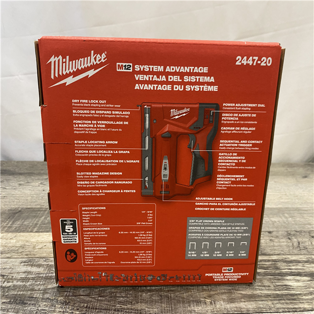 NEW - Milwaukee 12-Volt Lithium-Ion Cordless 3/8 in. Crown Stapler (Tool-Only)