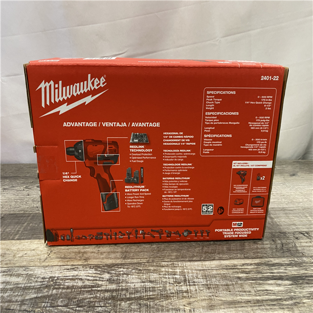 NEW - Milwaukee 12V Lithium-Ion Cordless 1/4 in. Hex Screwdriver Kit