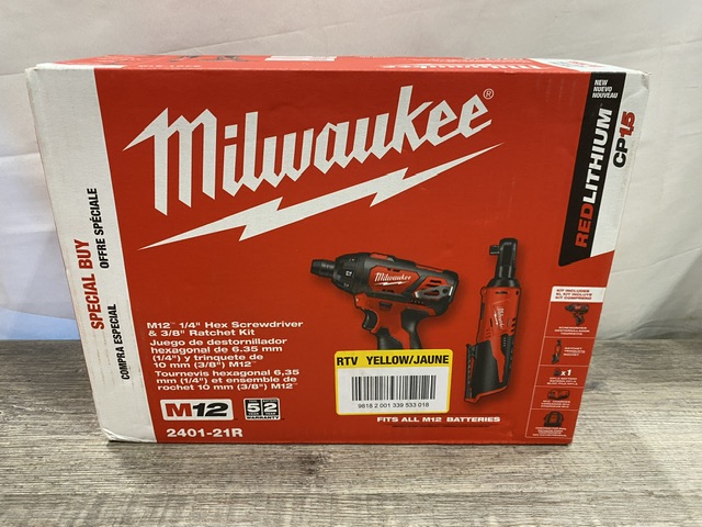 NEW - Milwaukee 12V Lithium-Ion Cordless 3/8 in. Ratchet and Screwdriver (2-Tool) Combo Kit