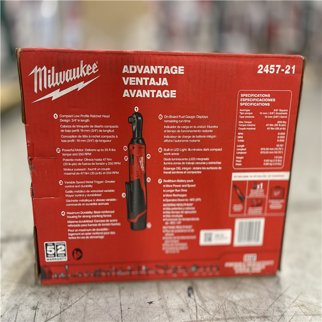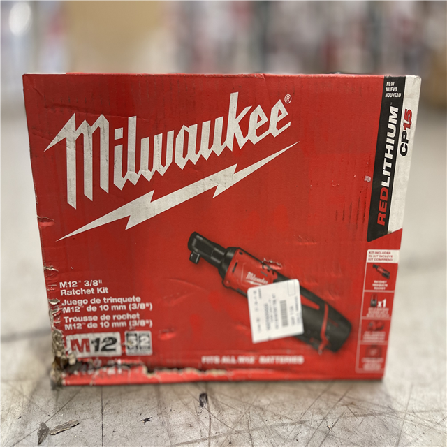 NEW! - Milwaukee M12 12V Lithium-Ion Cordless 3/8 in. Ratchet Kit with One 1.5 Ah Battery Charger and Tool Bag