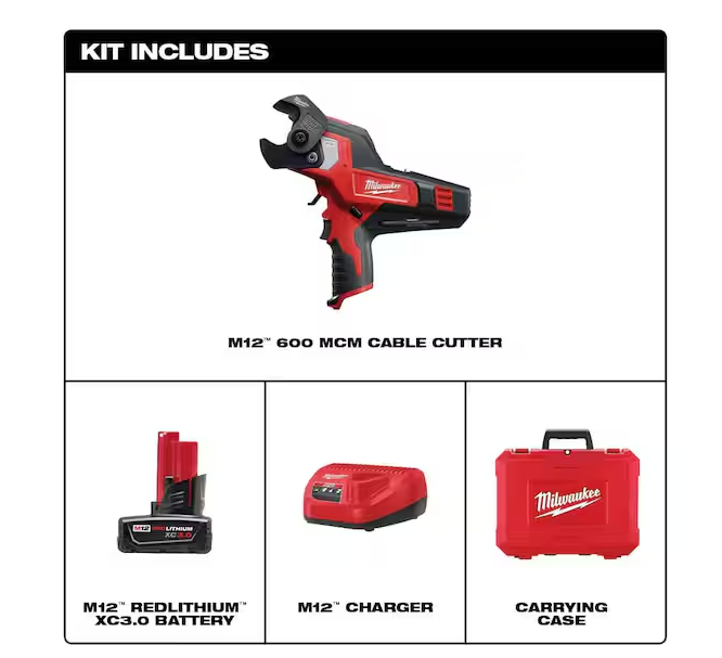 NEW! - Milwaukee M12 12V Lithium-Ion Cordless 600 MCM Cable Cutter Kit with One 3.0Ah Battery Charger and Hard Case