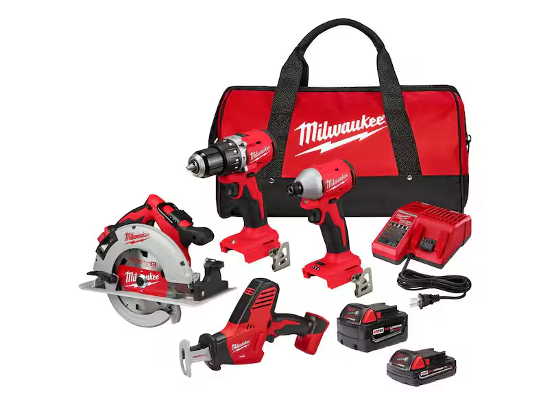 NEW! - Milwaukee M18 18-Volt Lithium-Ion Brushless Cordless Combo Kit (4-Tool) with 2-Batteries 1-Charger and Tool Bag