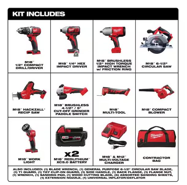 NEW! - Milwaukee M18 18-Volt Lithium-Ion Cordless Combo Kit (9-Tool) with (2) Batteries Charger and Tool Bag