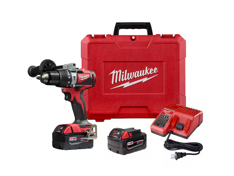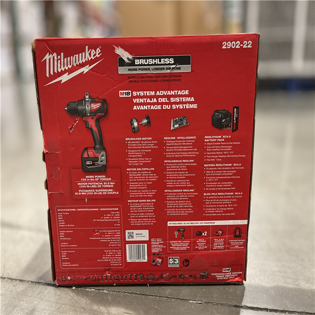 NEW! - Milwaukee M18 18V Lithium-Ion Brushless Cordless 1/2 in. Compact Hammer Drill/Driver Kit w/Two 4.0Ah Batteries and Hard Case
