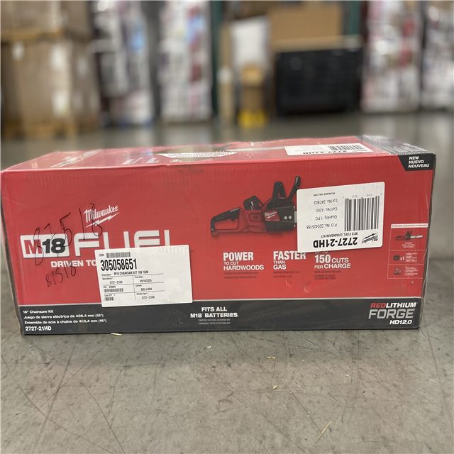 NEW!- Milwaukee M18 FUEL 16 in. 18V Lithium-Ion Brushless Battery Chainsaw Kit with 12.0 Ah Battery and M18 Rapid Charger