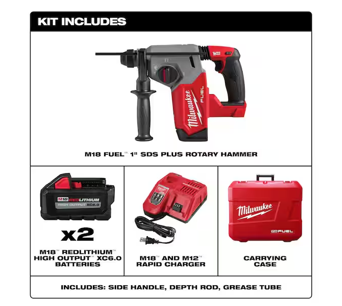 NEW! - Milwaukee M18 FUEL 18V Lithium-Ion Brushless 1 in. Cordless SDS-Plus Rotary Hammer Kit with Two 6.0 Ah Batteries Hard Case