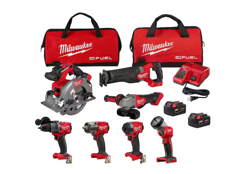 NEW! - Milwaukee M18 FUEL 18V Lithium-Ion Brushless Cordless Combo Kit with Two 5.0 Ah Batteries 1 Charger 2 Tool Bags (7-Tool)