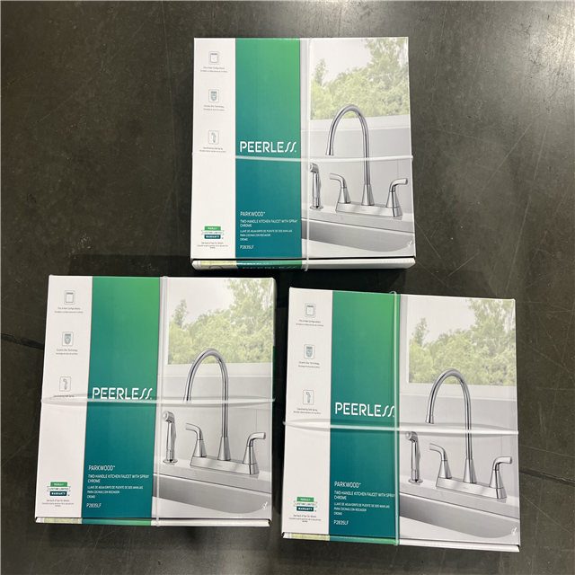 NEW! - Peerless Parkwood 2-Handle Standard Kitchen Faucet with Side Sprayer in Chrome-(3 UNITS)