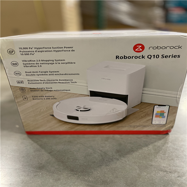 NEW! - Roborock Q10 VFS+ 13. 9 in. Robotic Vacuum and Mop with Smart Navigation Auto Lifting Mop Multi-Surface in White