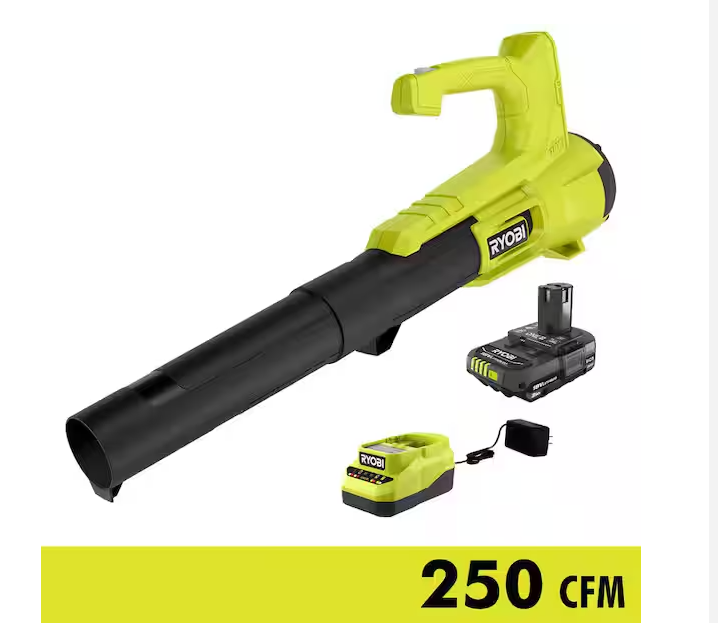 NEW! - RYOBI ONE+ 18V 90 MPH 250 CFM Cordless Battery Leaf Blower/Sweeper with 2.0 Ah Battery and Charger