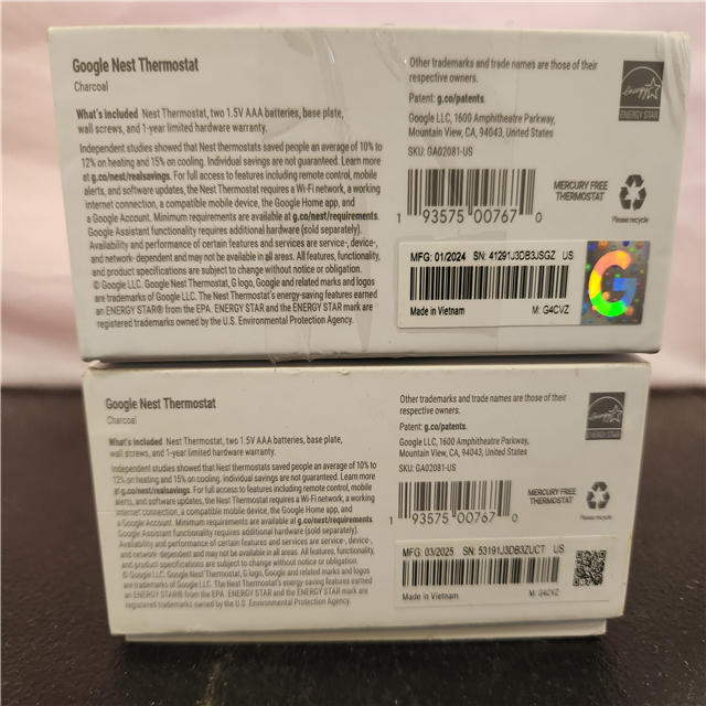 Phoenix AS-IS Google Nest Thermostat - Smart Programmable Wi-Fi Thermostat - Charcoal (2-Pack)