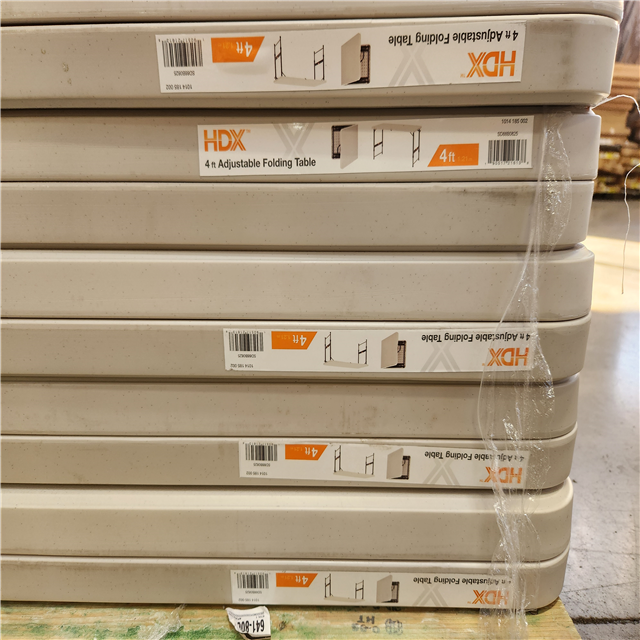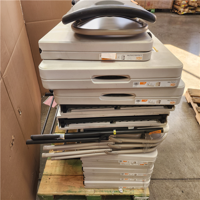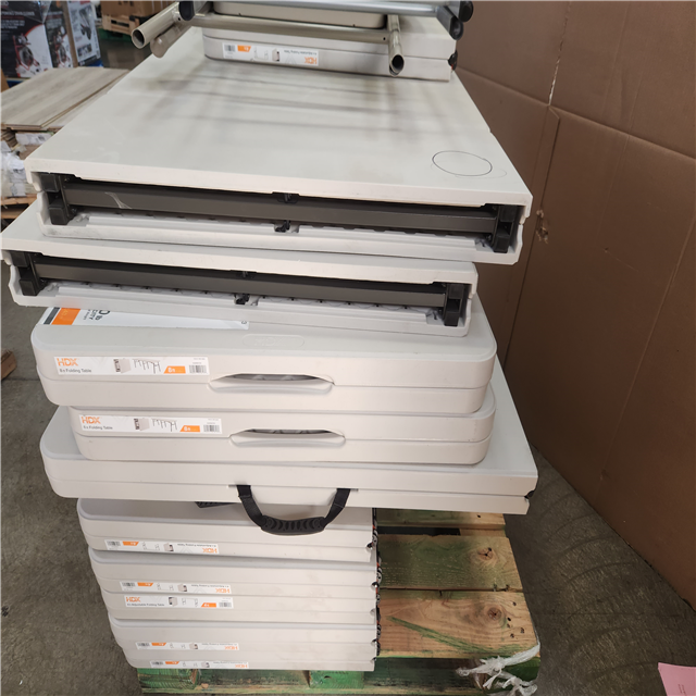 Phoenix AS-IS Mixed HDX Rectangle Almond Resin Top Single Hand Height Adjustable Folding Utility Table with Chairs Pallet (16-Tables)