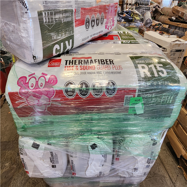 Phoenix AS-IS Owens Corning 15 in. x 47 in. R15 Thermafiber Fire and Sound Guard Plus Mineral Wool Insulation Batt 390 Square Feet Pallet (10-Bags)