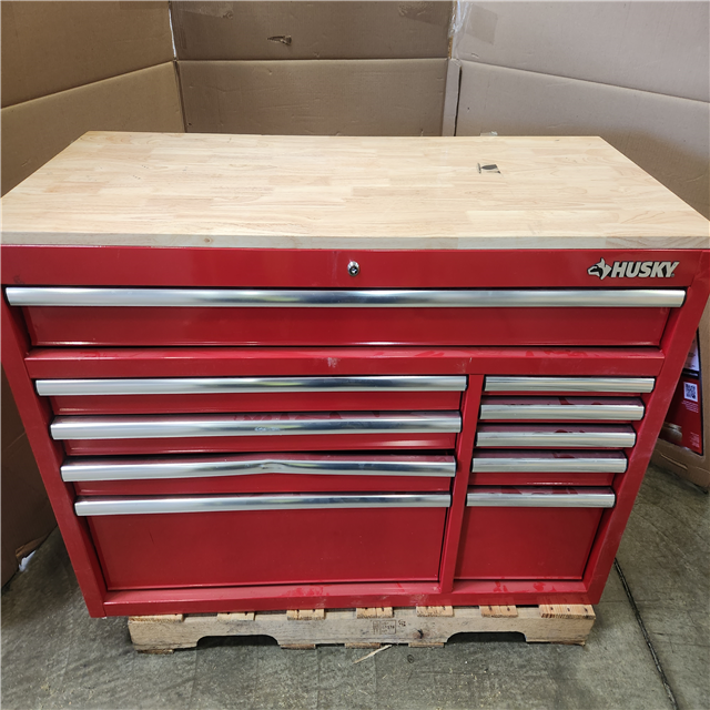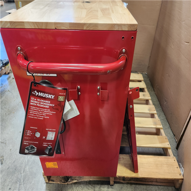 Phoenix Husky 52 in. W 10-Drawer Gloss Red Mobile Workbench Cabinet with Solid Wood Top and Pegboard