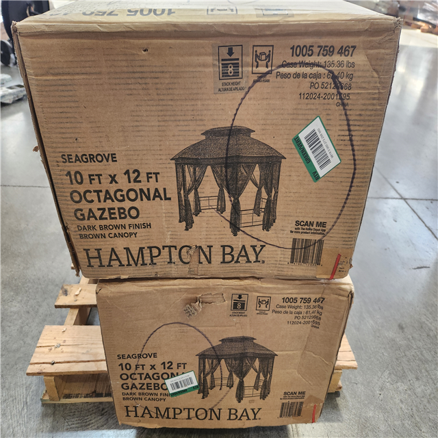 Phoenix NEW 2 Hampton Bay Seagrove 12 ft. x 10 ft. Octagonal Steel Frame Gazebo with Tan Canopy (SEALED)